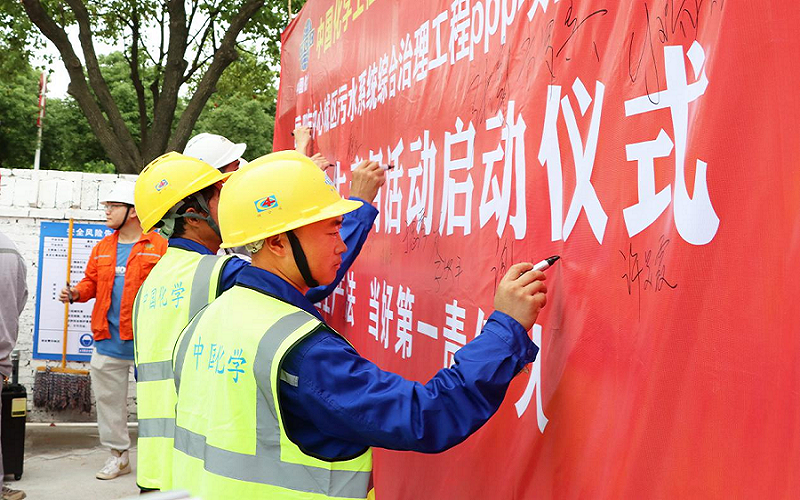 啟動儀式結束后,項目部全體人員共同在條幅上簽名并進行安全宣誓,進一步堅定安全生產的信心和決心。