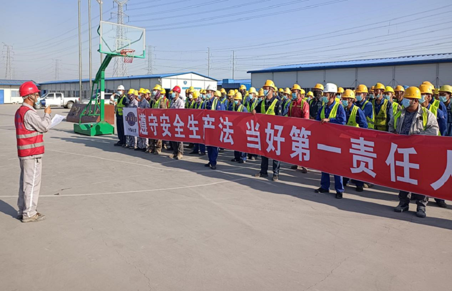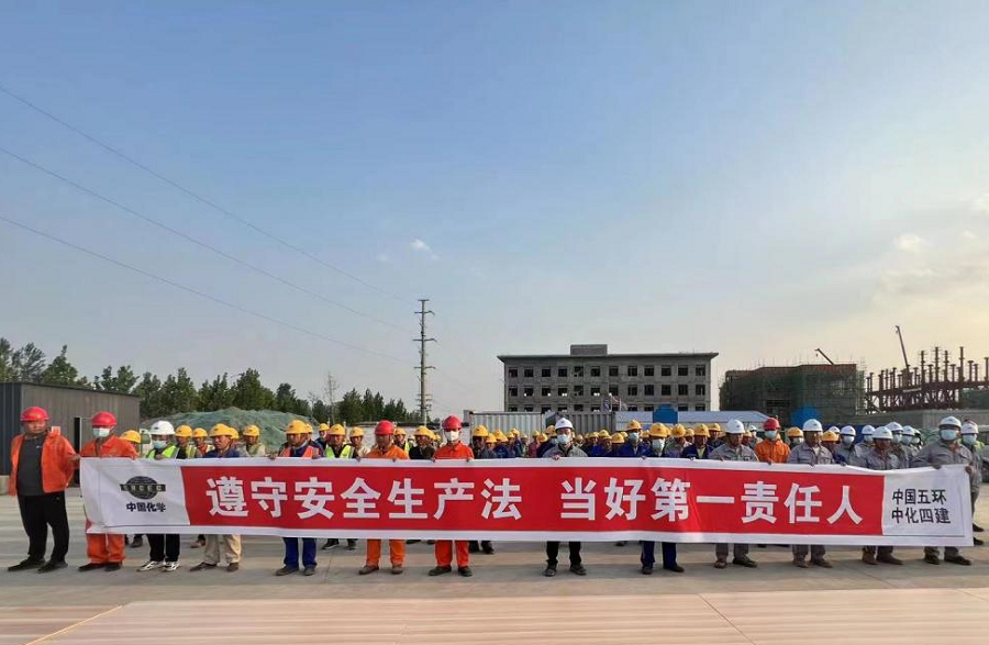 6月2日,東北公司滄州旭陽化工項目部舉行2022年“安全生產月”活動啟動儀式。項目經理宣讀了項目部“安全生產月”活動方案,對活動各項工作進行了詳細安排。在場全體人員進行了“安全生產月”活動宣誓,并在“遵守安全生產法當好第一責任人”主題宣傳條幅上簽名。