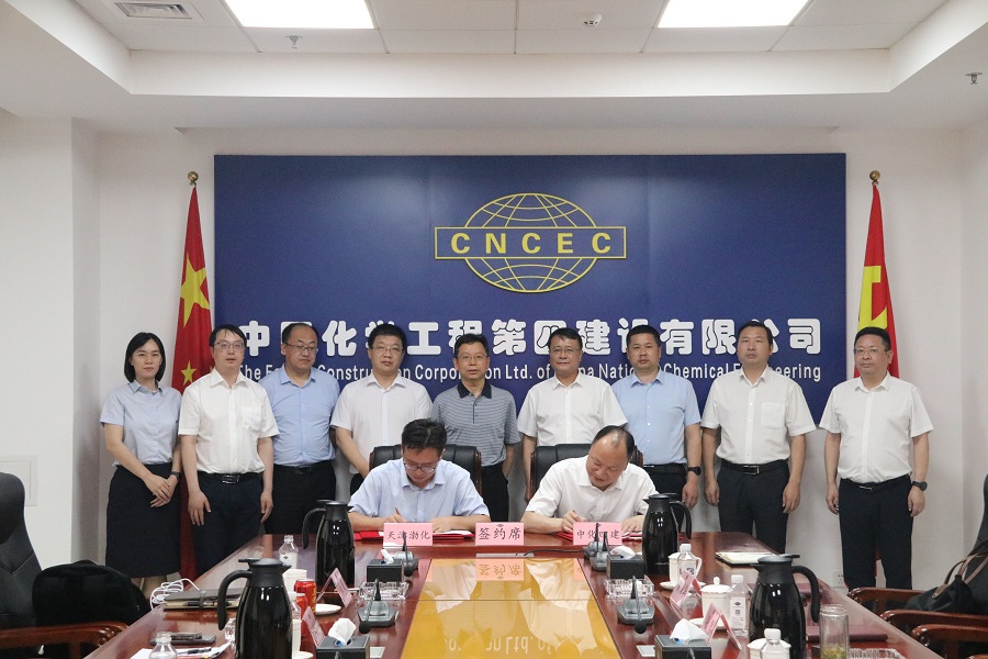7月9日,公司與天津渤化工程有限公司簽署了戰略合作協議。公司黨委書記、董事長胡流芳,天津渤?;ぜ瘓F有限責任公司黨委書記、董事長王俊明,總工程師、渤化化工發展有限公司黨委書記、董事長張曄輝等出席并見證簽署。公司黨委副書記、總經理周鴻與天津渤化工程有限公司黨委副書記、副董事長詹宏智代表雙方簽署協議。
