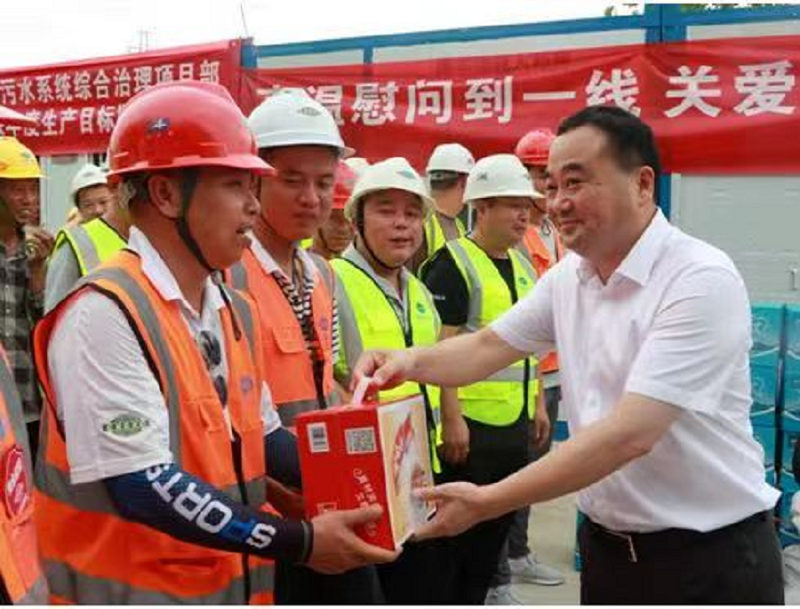 7月20日,岳陽市云溪區委書記劉正仁來公司岳陽市中心城區污水系統綜合治理項目看望慰問高溫期間堅守一線的員工。區委副書記、宣傳部長趙婷,區委常委、區委辦主任劉慶雄,區人大常委會副主任曹顯良,區工會、區住建局相關負責人;項目臨時黨支部、工會負責人等陪同。