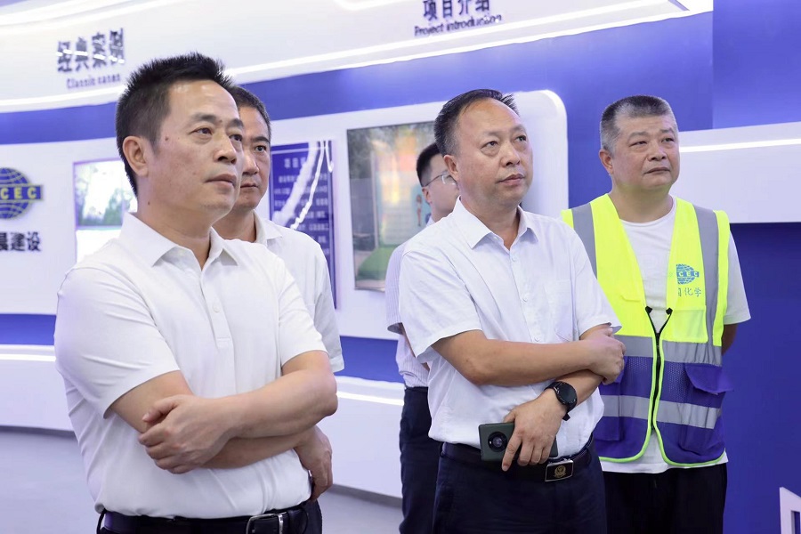 汪濤一行到EOD項目智慧工地展廳,查看項目近期建設進展情況,聽取了關于項目智慧工地的各項技術應用和智慧監管平臺建設工作的匯報。