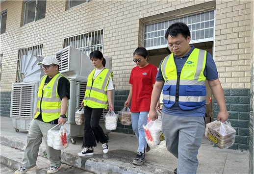 在抗洪救災的號角吹響后,市政公司綜合辦迅速響應,主動擔當,第一時間做好了應急部署和資源調度?!爸茏有酆皖櫾瞥蹦銈円敽孟蠕h,靈活響應各方需求;李穎負責聯(lián)系各大商家平臺,確保前線救援人員有充足的熱食供應;唐夢婷去對接災區(qū)村委,盡可能多的協(xié)調到休息場地,讓疲憊的救援隊伍能夠得到及時修整?!本C合辦的“家長”吳果葉逐一給每個人分配著任務,她的聲音清晰而堅定。