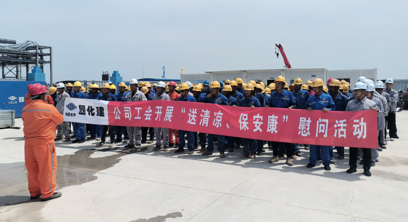 8月2日,受公司工會委托,公司安全生產(chǎn)管理部與華北公司在廣西桐昆項目開展“工會送清涼,防暑保安康”慰問活動,為一線職工送去涼茶、鹽汽水、清涼日用品等防暑降溫禮包。慰問組深入各施工班組,與職工親切交談,詳細(xì)了解他們的作息時間和防暑措施,宣傳高溫作業(yè)及中暑應(yīng)急預(yù)案等相關(guān)知識,叮囑大家在堅守崗位的同時務(wù)必注意勞逸結(jié)合,確保安全健康作業(yè)。