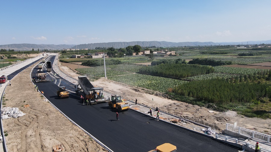 西部公司蘭州榆中項(xiàng)目中秋攤鋪道路瀝青