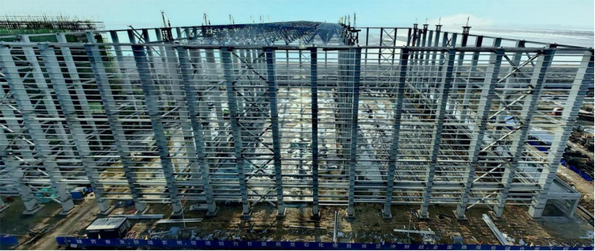 山東裕龍石化項目完成儲運立體倉庫網架結構整體安裝