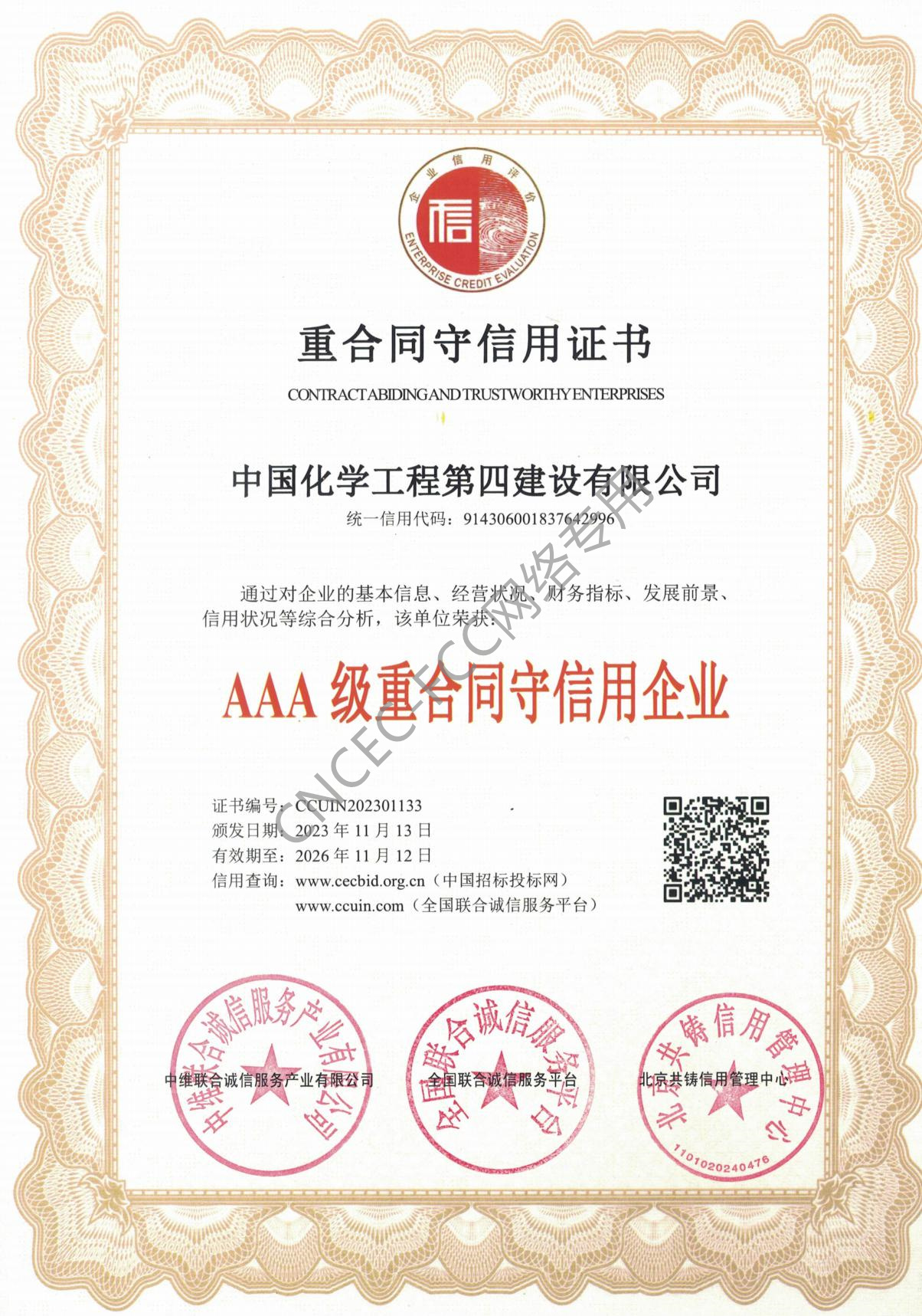 AAA級(jí)重合同守信用企業(yè)證書(shū)